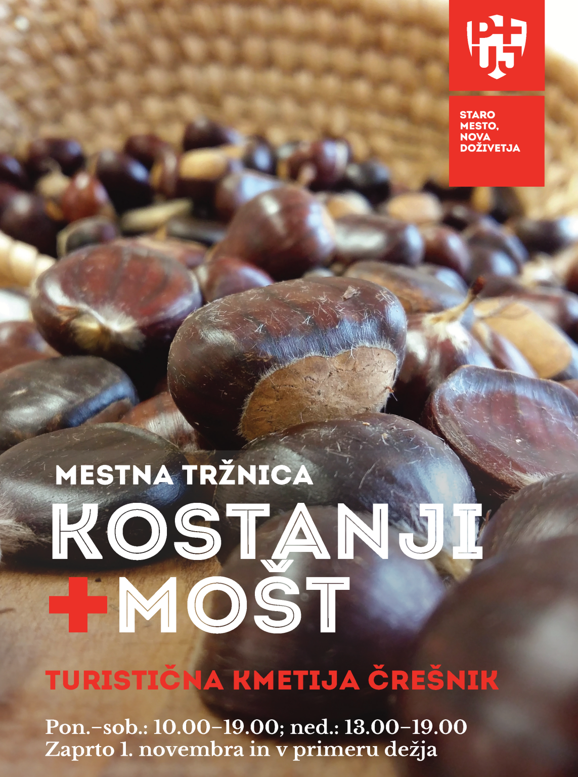 Na mestni tržnici bo od 10. oktobra do 11. novembra 2025 dišalo po jesenskih dobrotah Turistične kmetije Črešnik. Ustavite se in poizkusite najboljši kostanj in kozarec mošta.